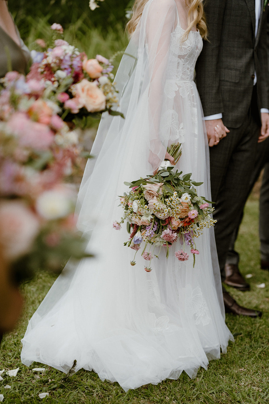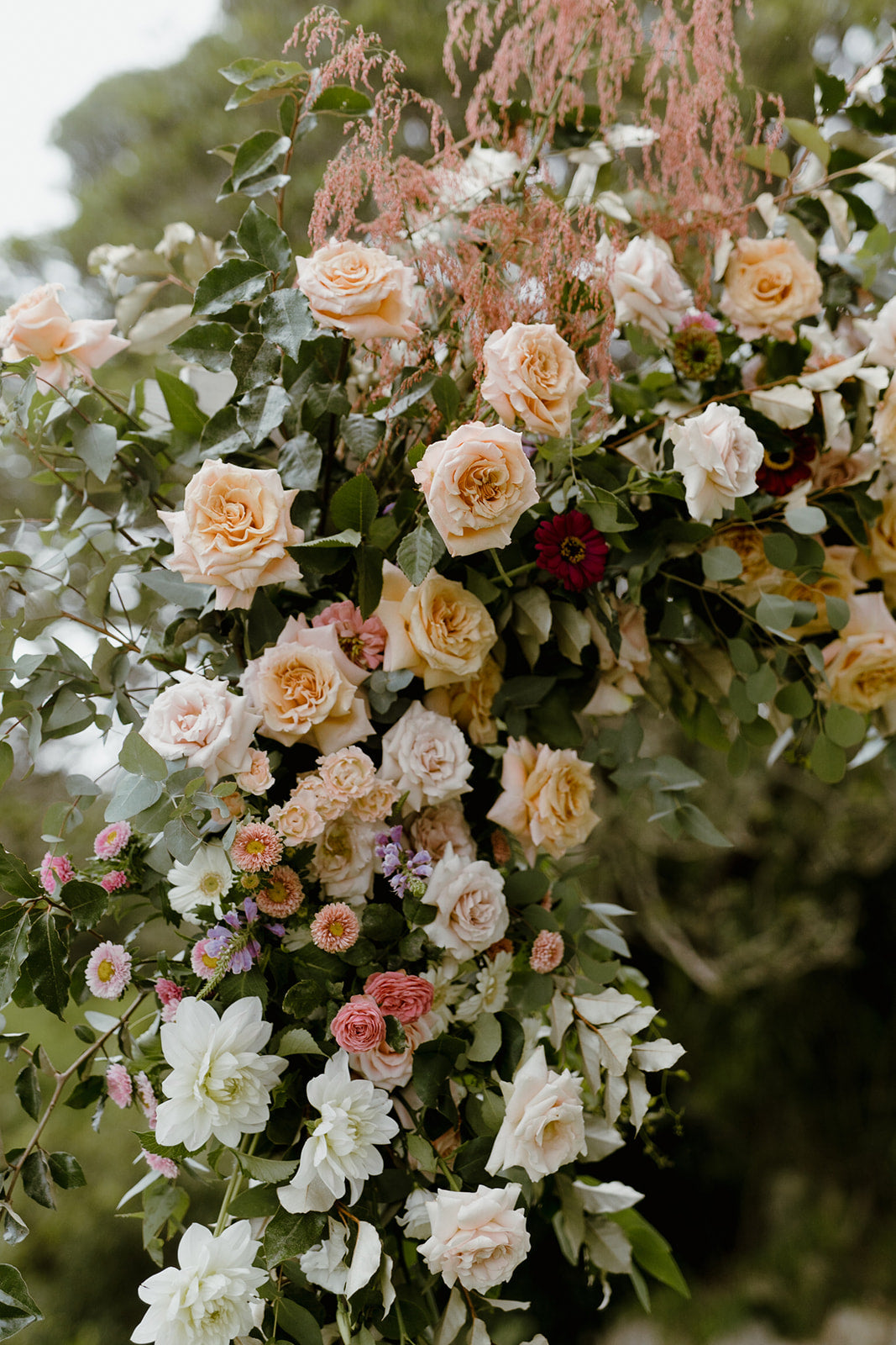 The celebration commenced under an arch decorated with a mix with roses and wild florals to create the soft and dainty look. Our floral recipes includes Roses, Wax, Zinnia, Chamomile and Dahlia.