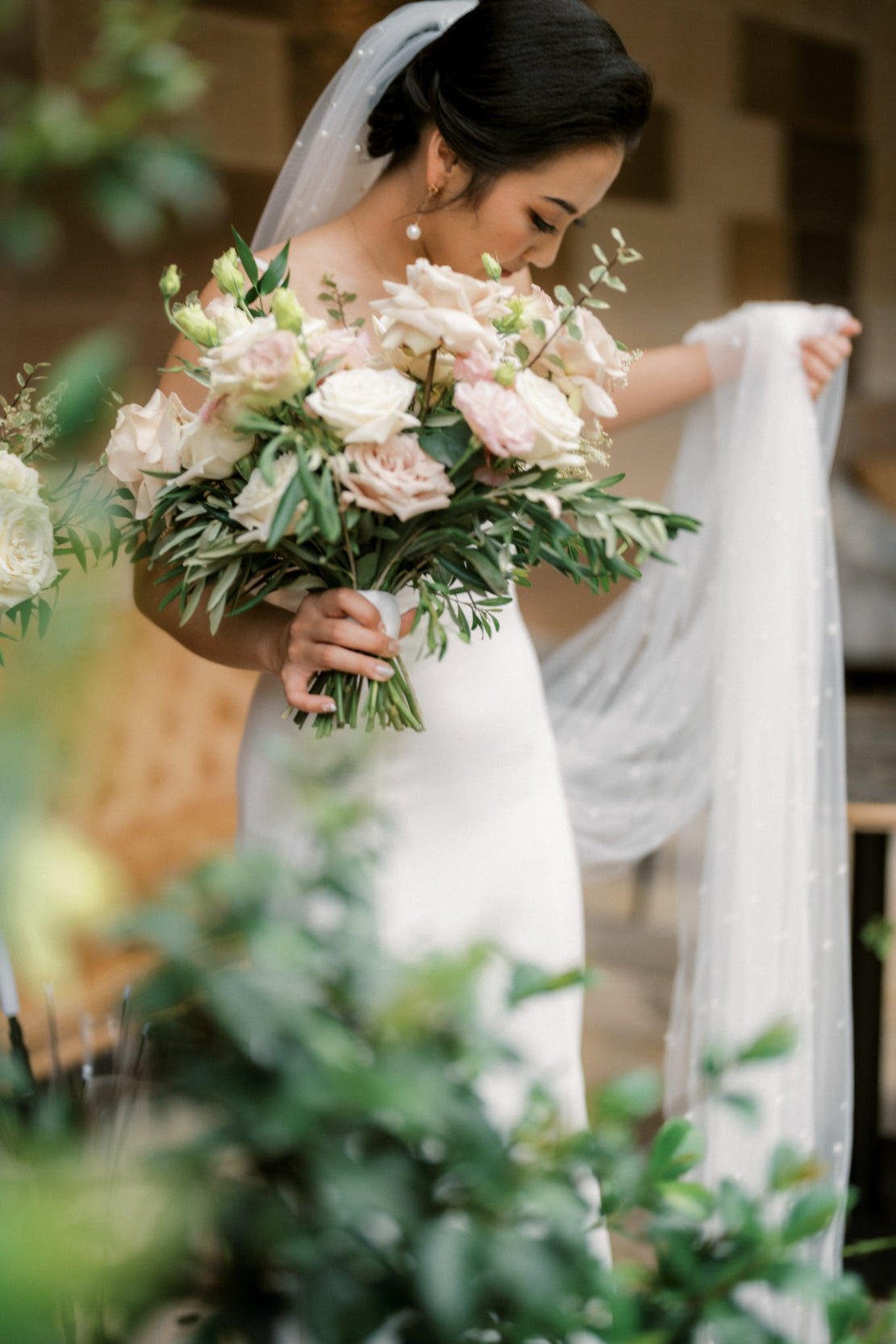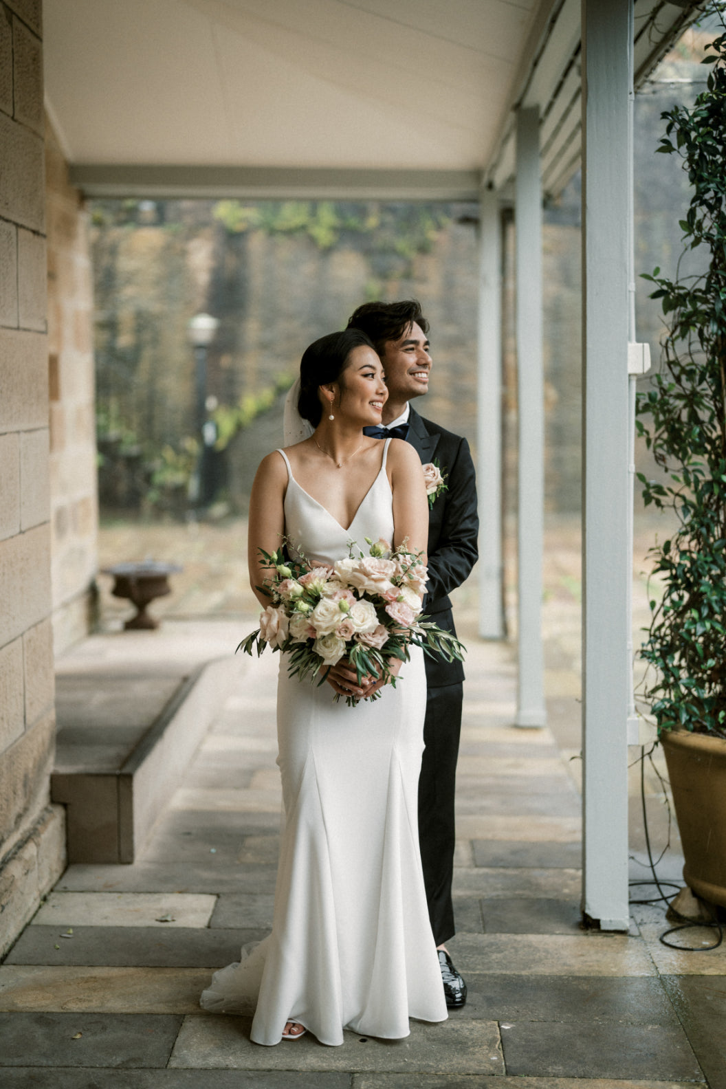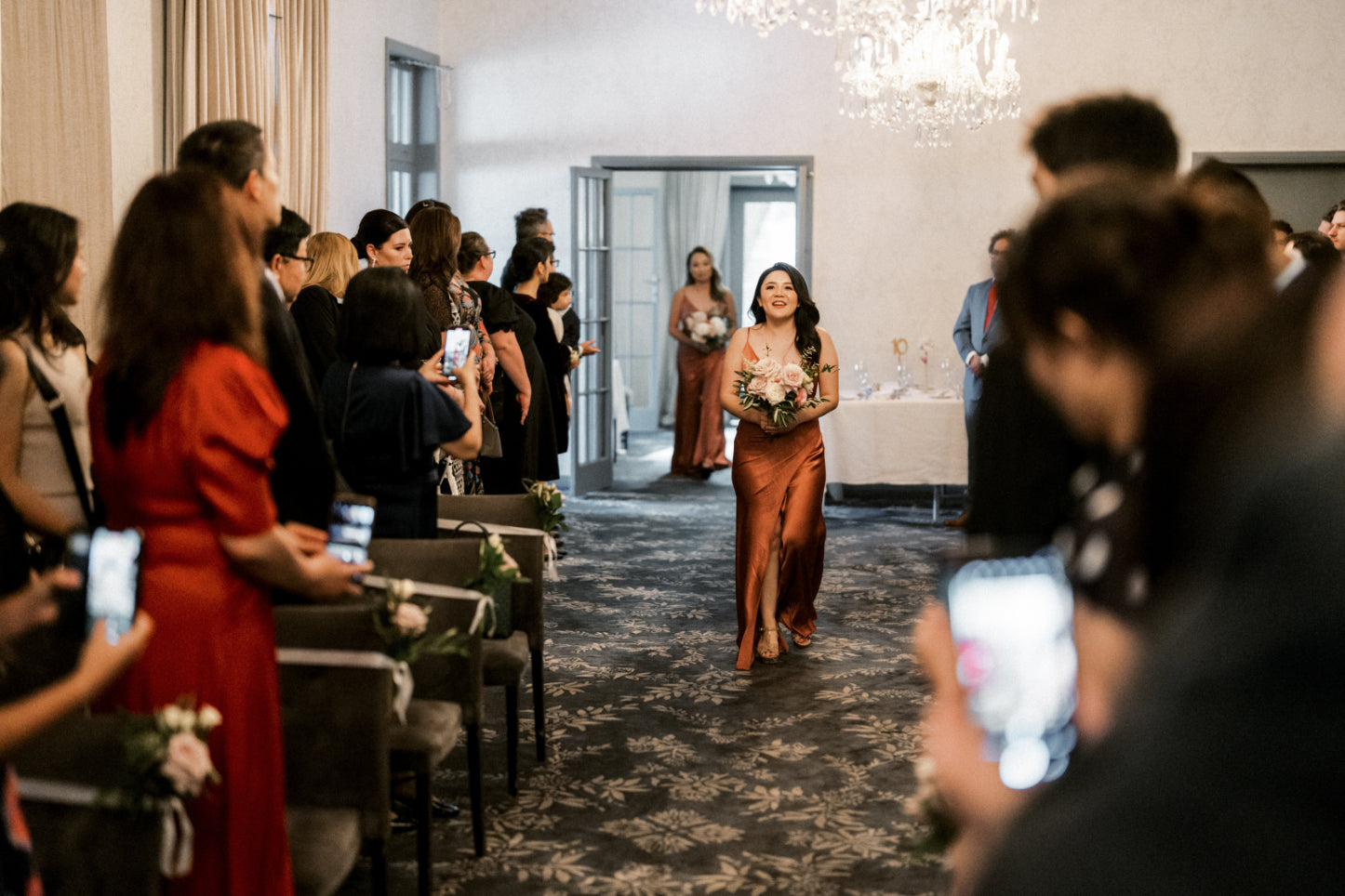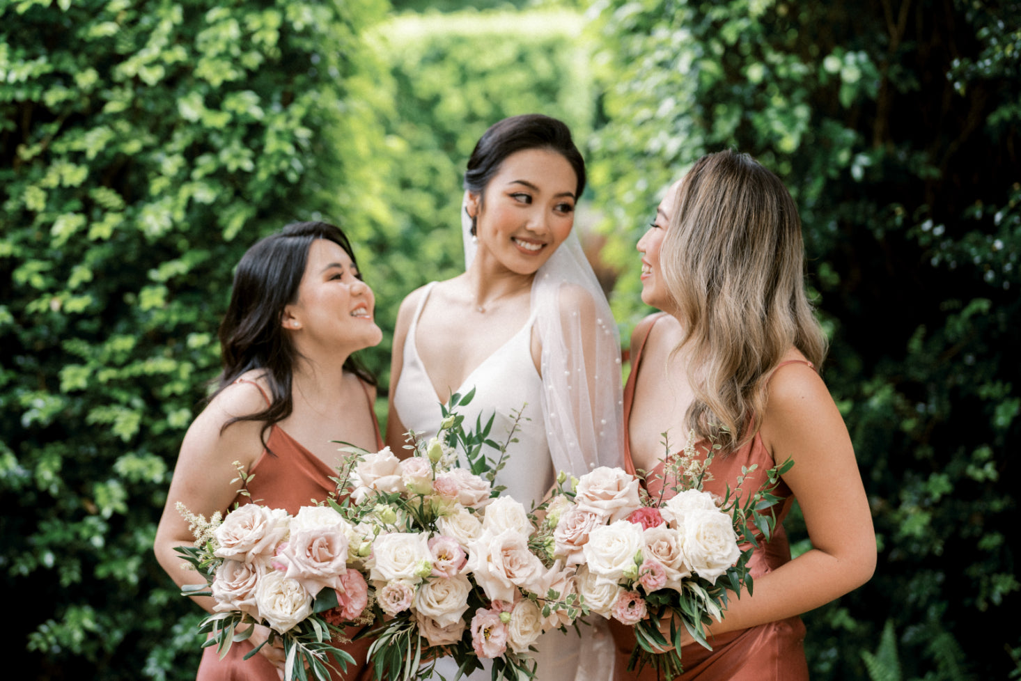 Juliet & Alex chose neutral tones for their wedding. White, Dusty Pink, Olive green to complement the terracotta tone bridesmaid dress.