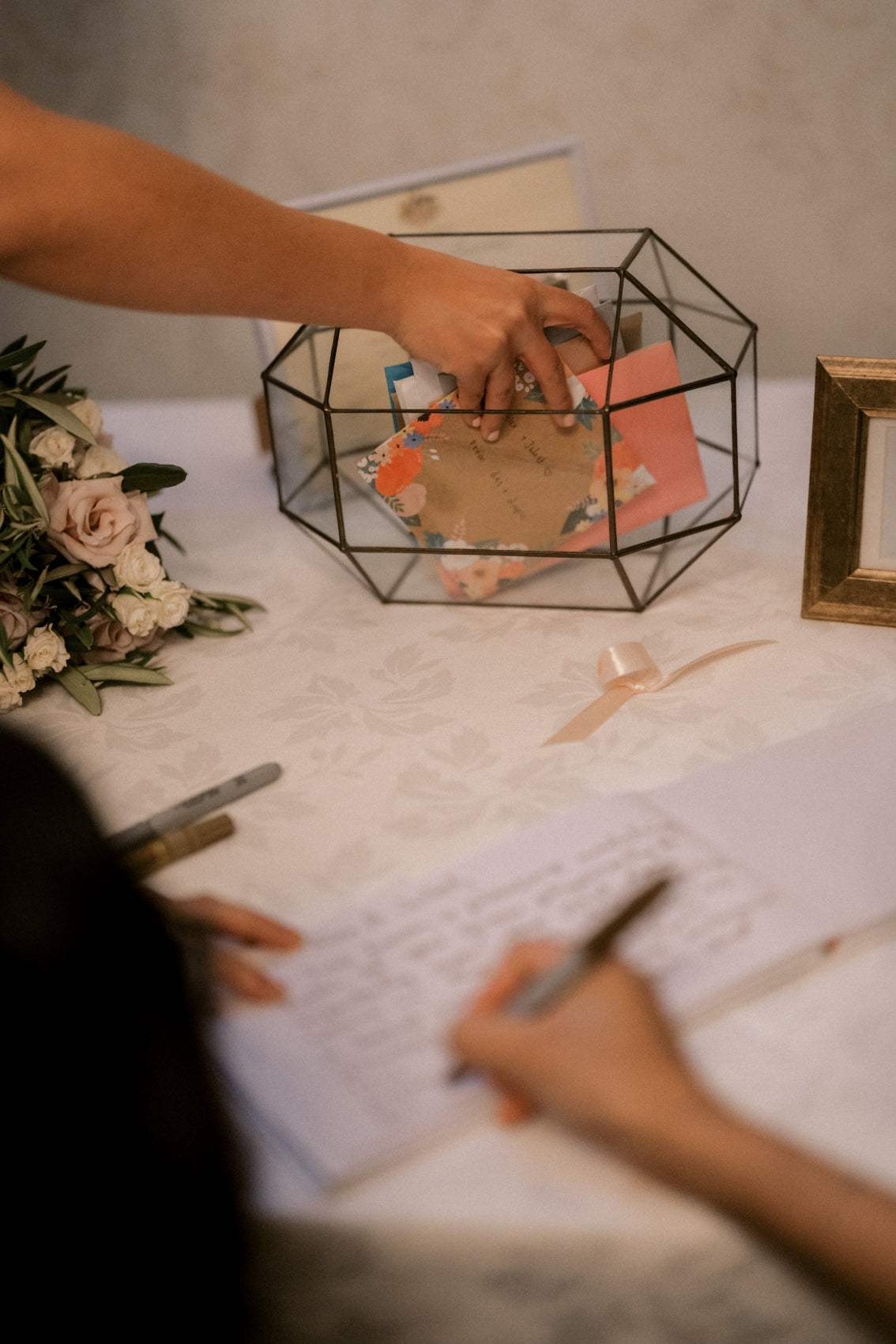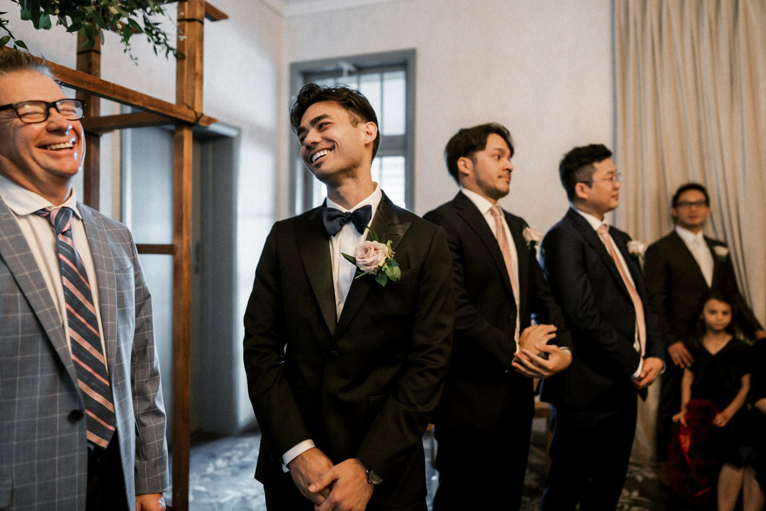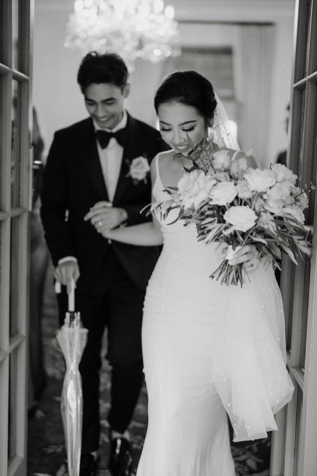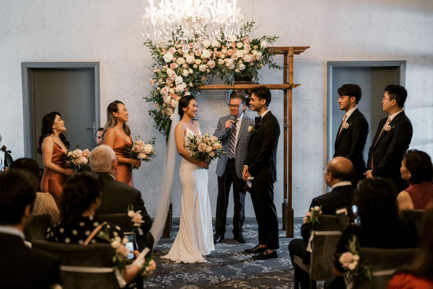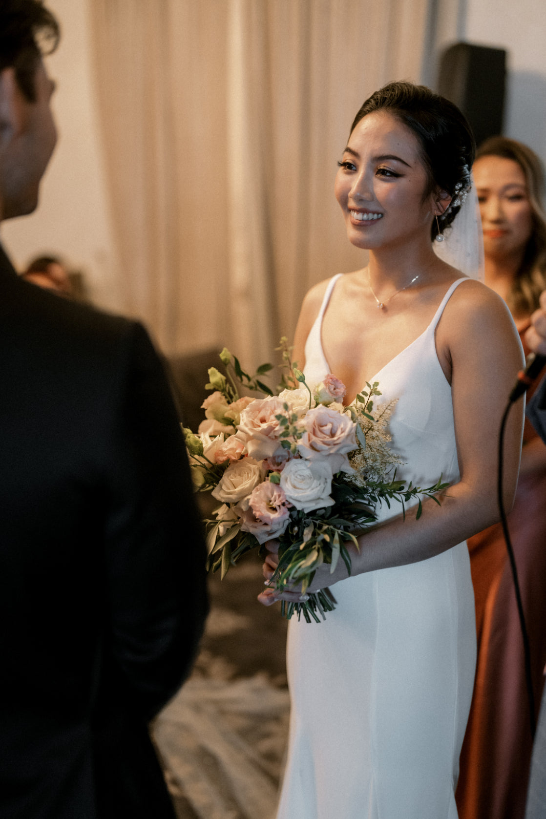 Juliet & Alex chose neutral tones for their wedding. White, Dusty Pink, Olive green to complement the terracotta tone bridesmaid dress.