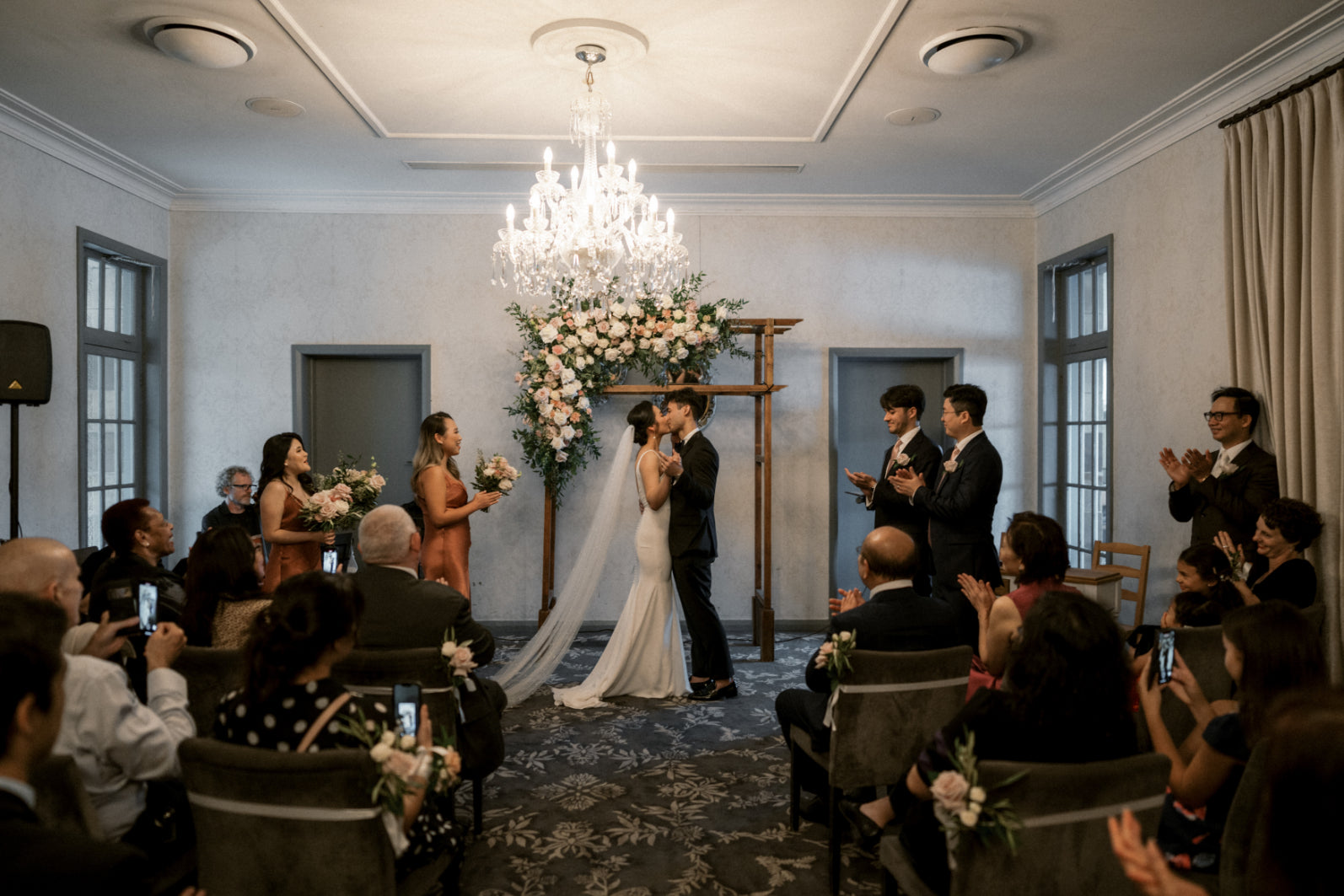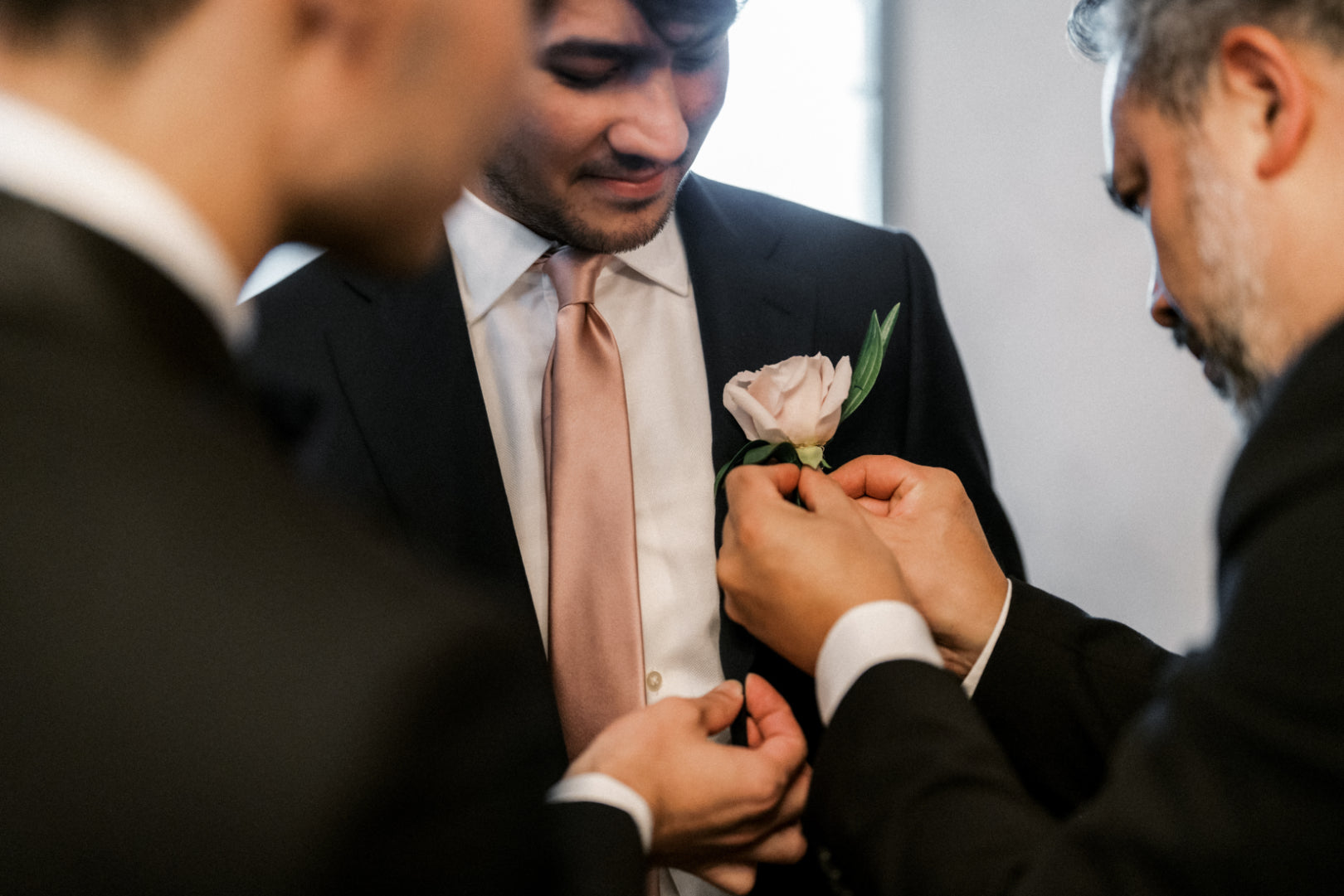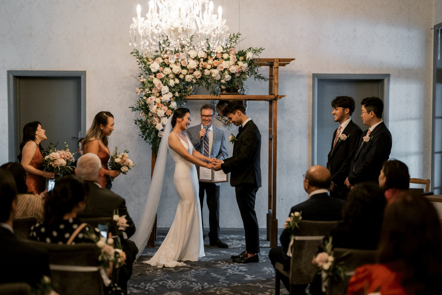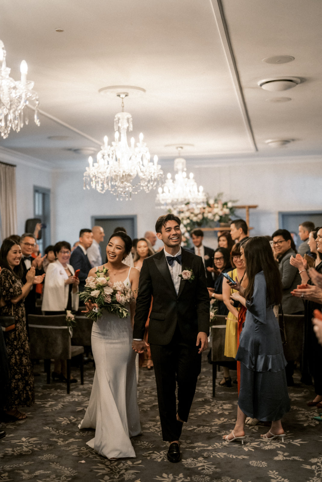 Juliet & Alex chose neutral tones for their wedding. White, Dusty Pink, Olive green to complement the terracotta tone bridesmaid dress.