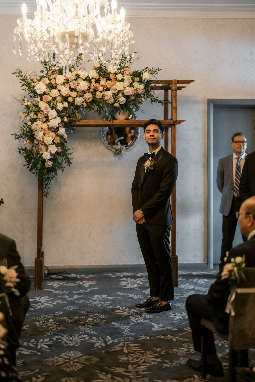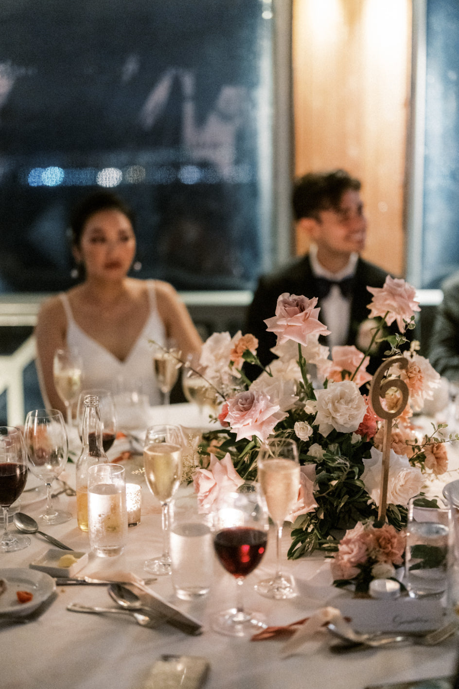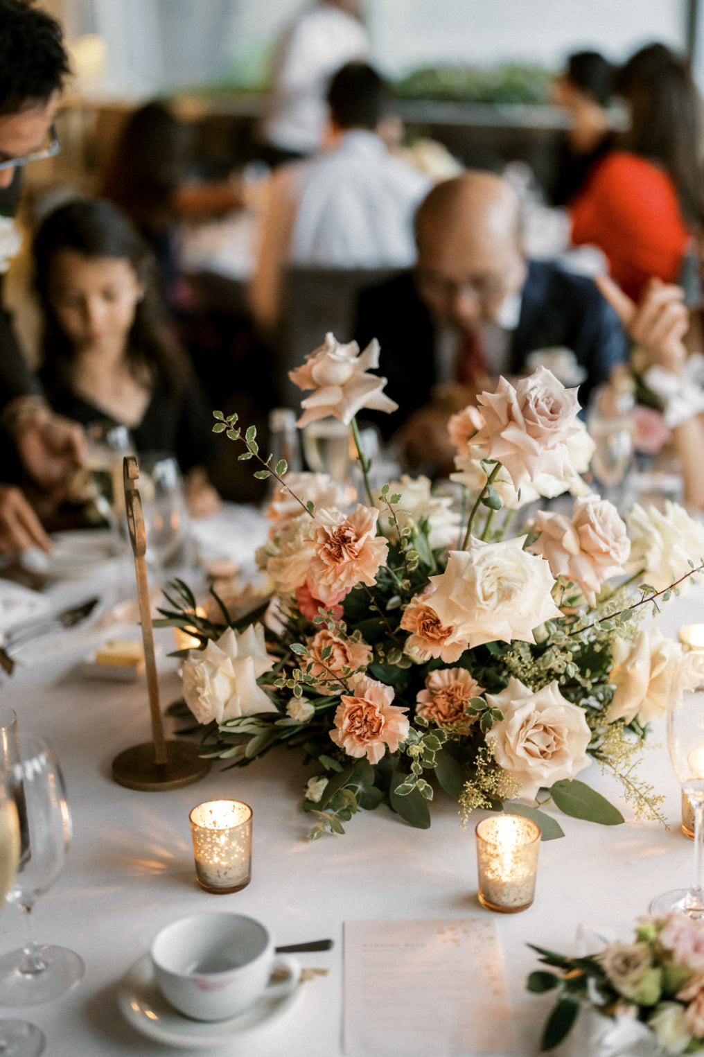 Everything from the bouquets to ceremony to table arrangements use premium Columbian roses ie Quicksand, Playa Blanca, mixing with cappuccino tone carnation, olive foliage and Italian Ruscus to complete the look.