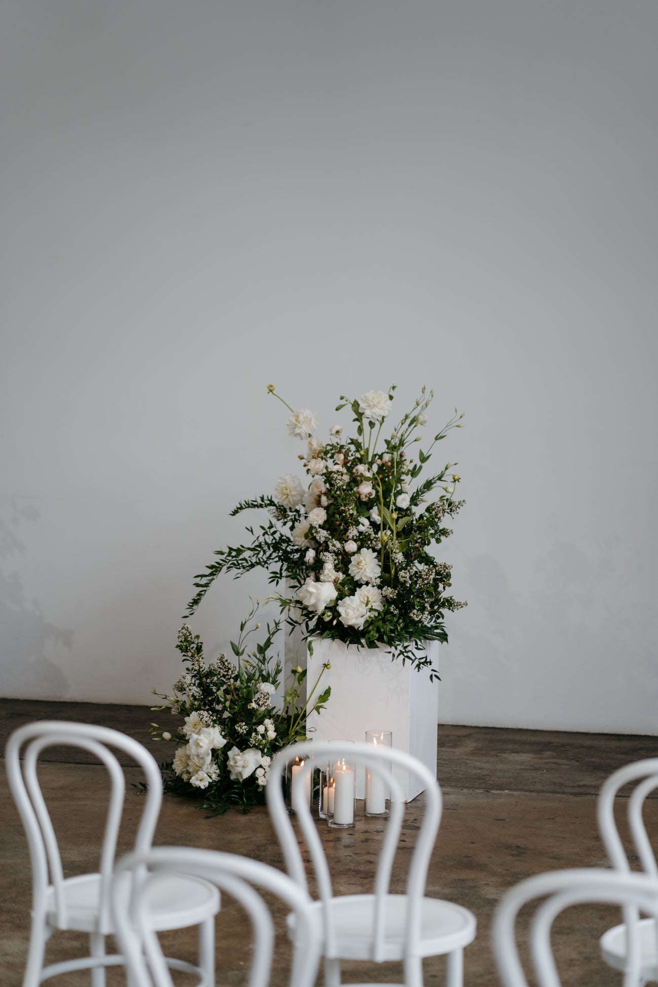 For ceremony, we added in our summer favourite Dahlia to complement the natural, elegant aesthetic.